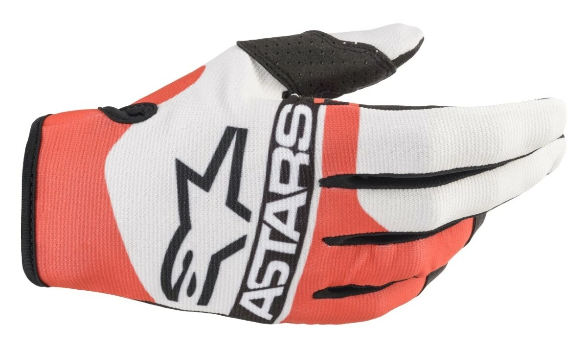 The Radar Glove from Alpinestars is a lightweight MX glove with a single piece spandex upper and synthetic suede palm reinforcements. These materials provide high levels of comfort and improved feeling with the controls.