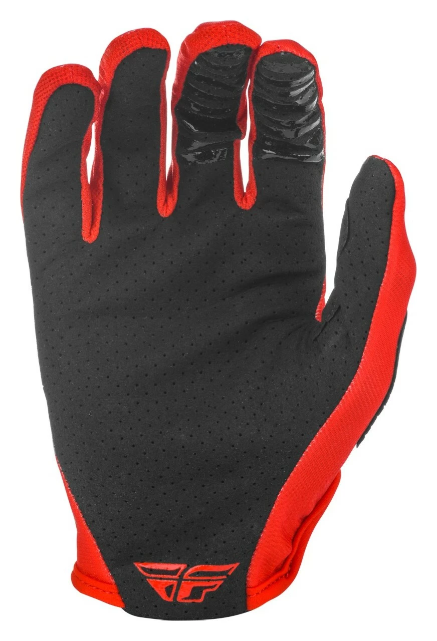 The Fly Racing Dirt Lite Gloves deliver race proven performance with a lightweight single layer perforated Clarino palm and spandex mesh finger sidewall gussets for maximum air flow.