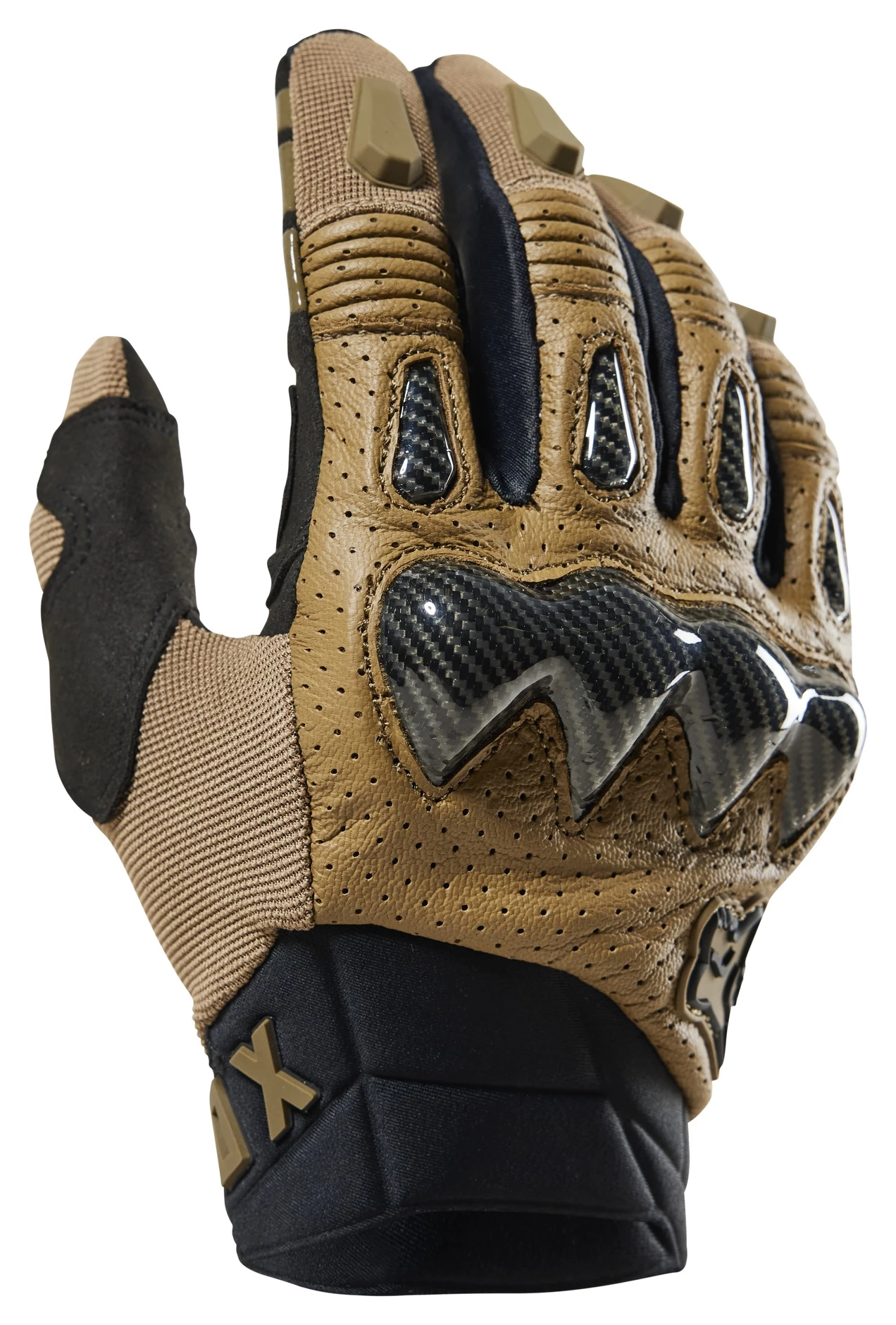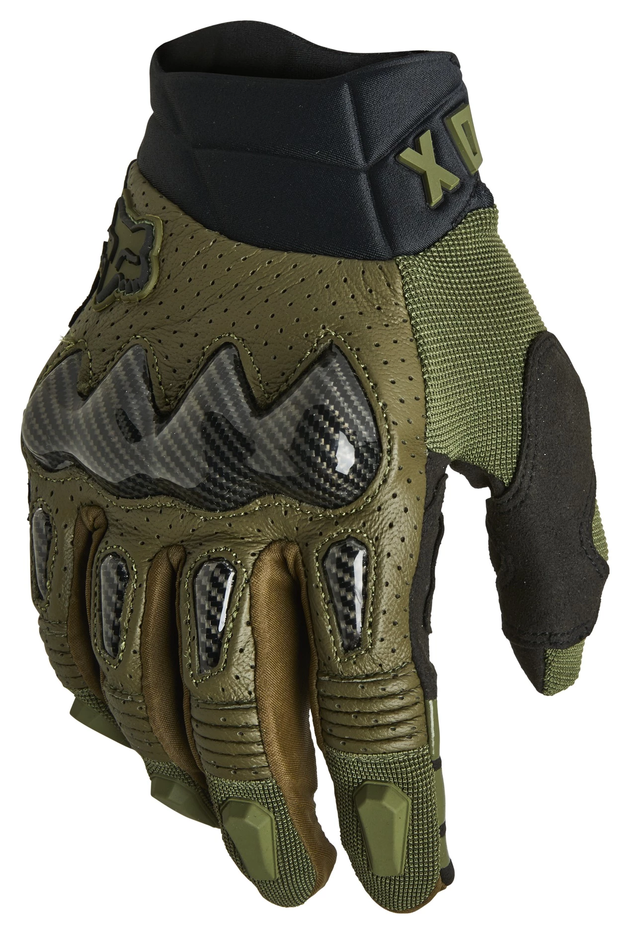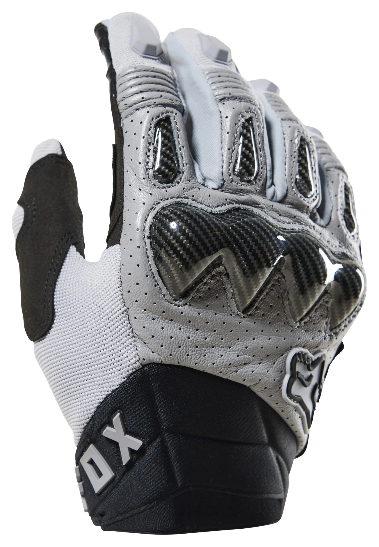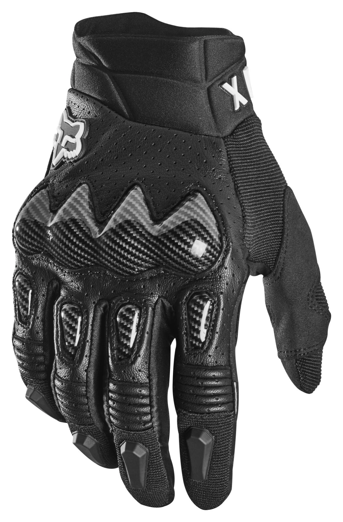 The Fox Racing Bomber Gloves sport a style taken directly from the racetrack. Carbon-look knuckle and finger sliders sit atop genuine goatskin. The palmย side of the glove is covered by two layers of Clarino synthetic leather. The list of the Bomber Gloves standard weaponry includes touchscreen-friendly fingertips, silicone lever grips at the fingers and a comfortable molded neoprene cuff with hook and loop adjusterย