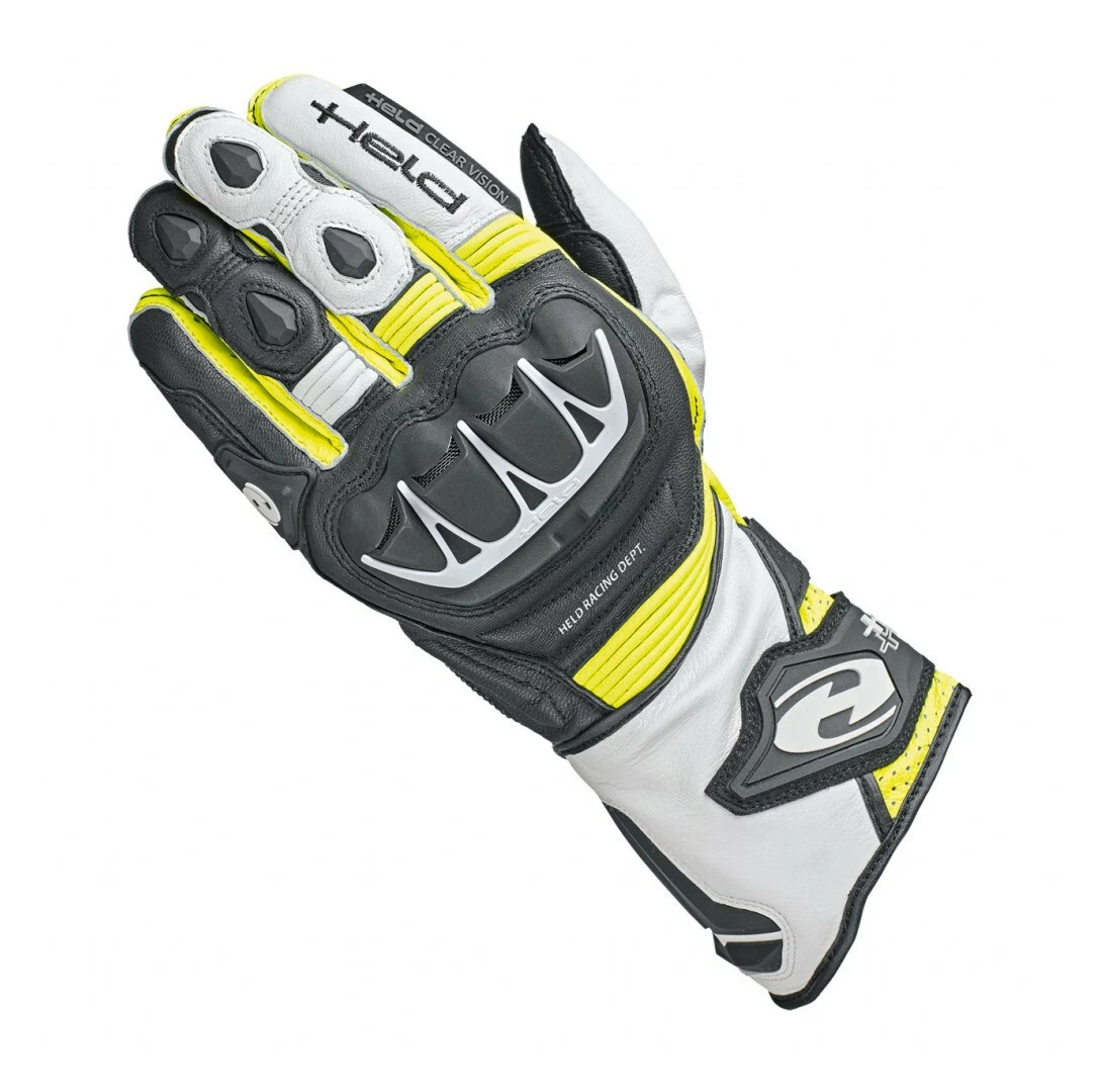 Suit up for your next ride with the Held Evo-Thrux II Gloves. Constructed with goat skin and kangaroo leather along with Aramid protection and hard knuckle plastic, these gloves will keep you protected and ready to go. The ball of the thumb is reinforced with SuberFabric material underlaid with Armaprotec for durability and abrasion resistance. The Evo-Thrux II Gloves also feature touch technology for ease of smartphone use.