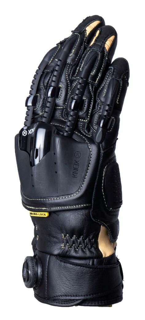 The Knox Handroid Pod MK 4 motorcycle gloves are the popular short cuff version of the award winning Handroid. Due to its design these are the most striking motorcycle gloves ever made. The design includes features such as the scaphoid protection system as well as the eye catching exo skeleton finger spines which cover the tops of the fingers for impact protection as well as a unique closing system which always ensures a perfect fit.