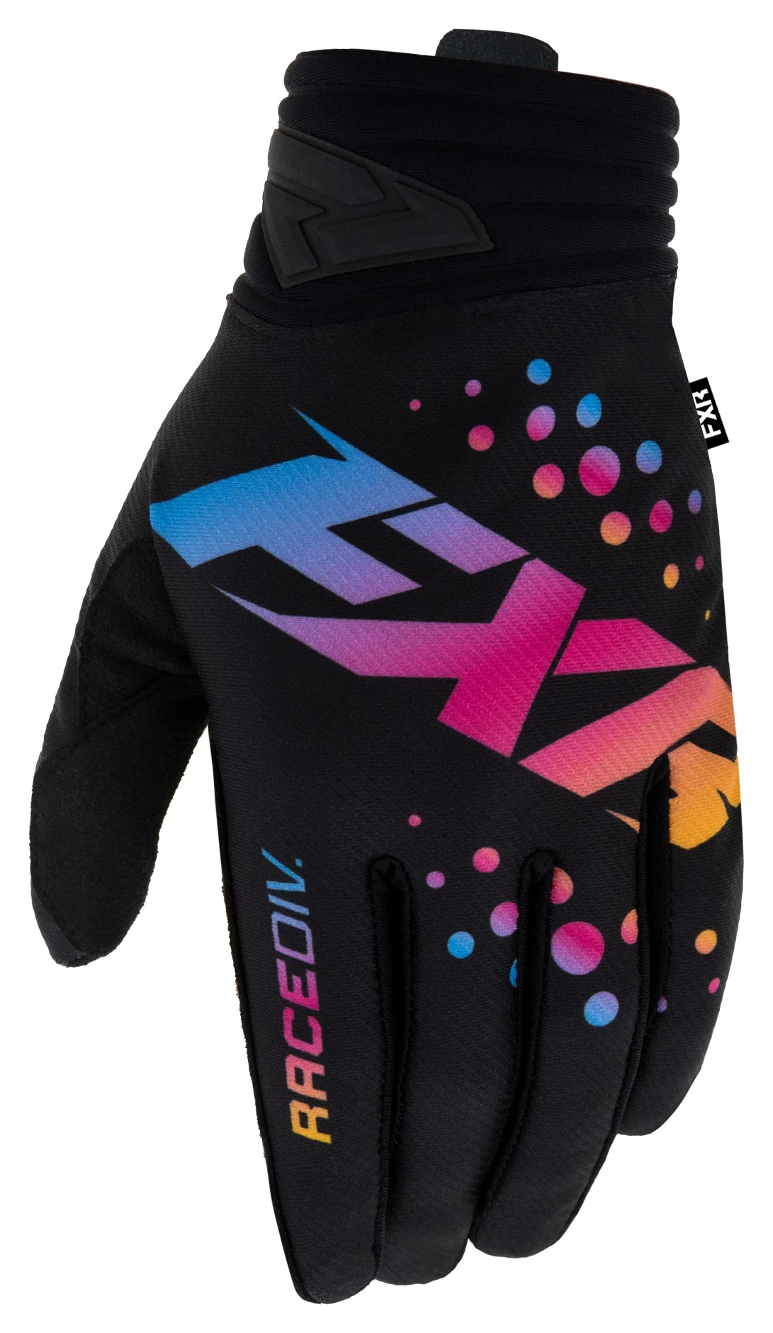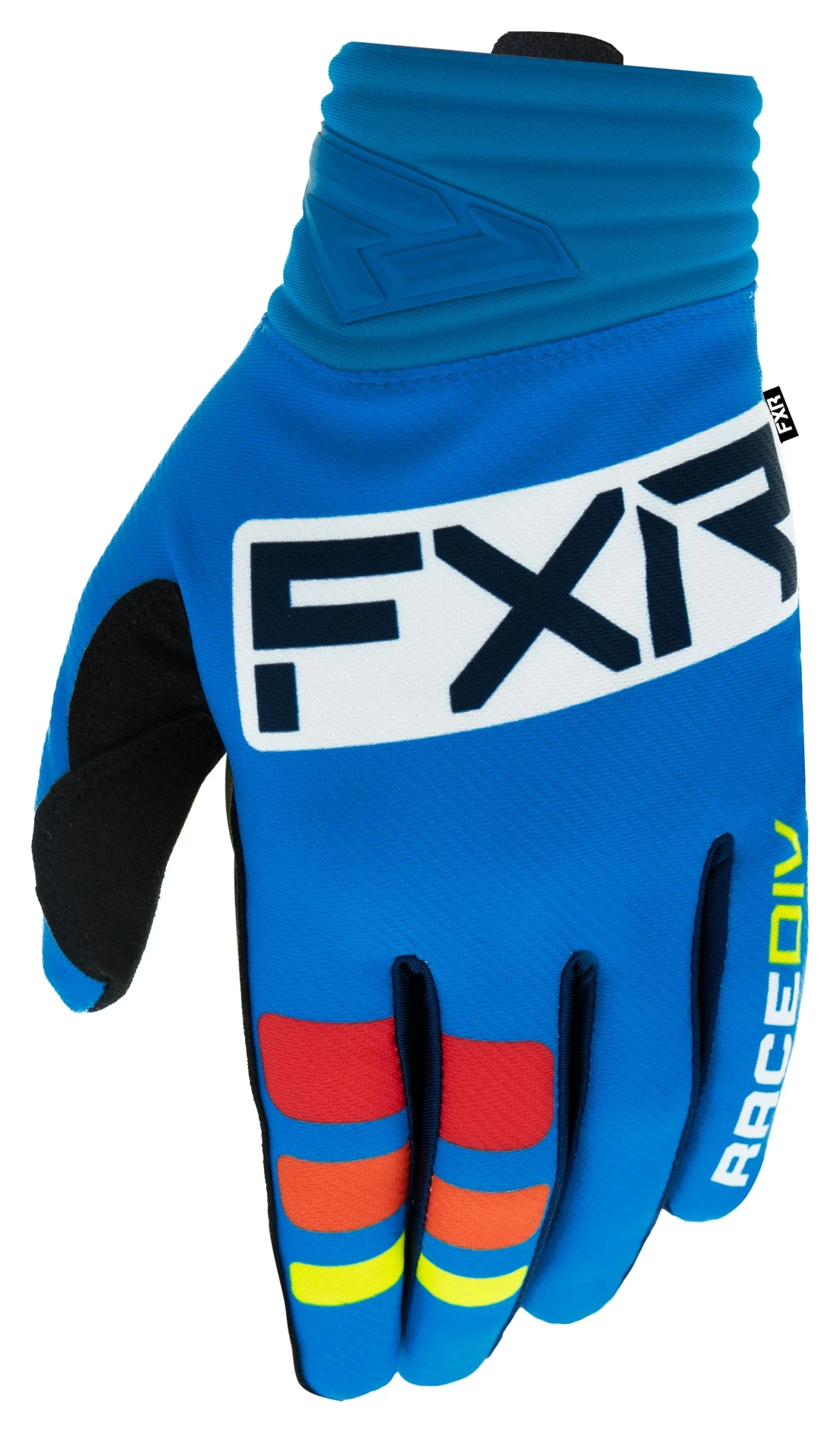 The Prime MX Gloves from FXR feature a slip-on neoprene cuff design, stretch knit fabric for increased durability and secure fit, a single layer Clarino palm for higher dexterity and mesh forucheetes for increased airflow.