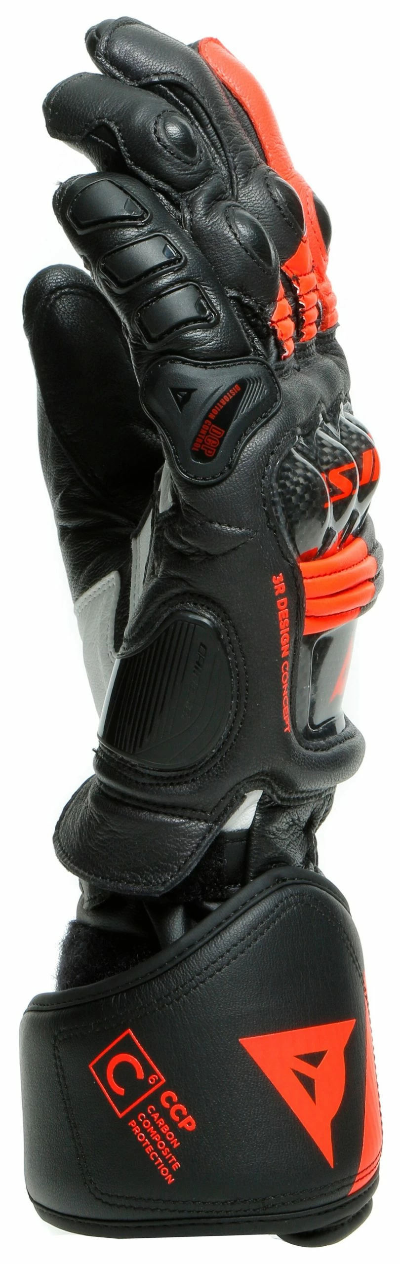 Dainese continues the tradition of a hard-hitting track and street hybrid glove with the Druid 3 Gloves. Ergonomically cut for all-day comfort, the Druid 3 Gloves pull features directly from Mugello and Misano. A goatskin chassis with sheep leather reinforcement maximizes communication through the bars. Carbon fiber inserts across the knuckles and on the back of hand mitigate impacts and abrasion. Additional hard sliders at the palm and wrist and the DCP system at the fourth finger help nest the Druid 3 Gloves even higher up the glove food chain. ย ย