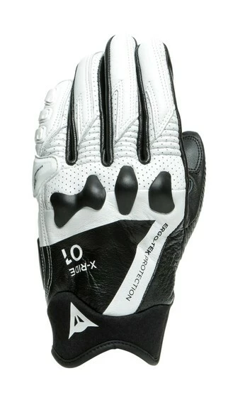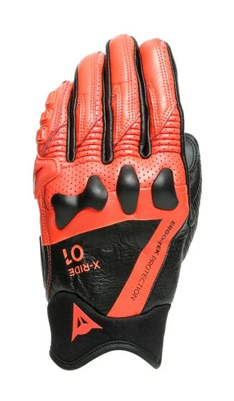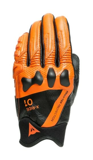 The Dainese X-Ride leather gloves use Ergo-Tek knuckle protection technology which was created by mapping those areas of MotoGP riders gloves most susceptible to impact. The result is a glove that combines maximum protection, thanks to its nylon-carbon plates, with significant freedom of movement. The pinky finger is one of the most sensitive and fragile parts in an impact. It is protected with a special thermoplastic plate which limits any damage owing to friction against the asphalt or other surfaces. The integrated DCP system also protects it against any twisting. For maximum comfort regardless of hand movement, large stretch areas are inserted on the back, upper fingers and thumb. The goatskin used to create X-Ride offers excellent abrasion resistance, maximum softness and flexibility. Smart Touch technology inserts on the fingers allow for the use of a smartphone, GPS or other touchscreen system with no need to remove the glove.