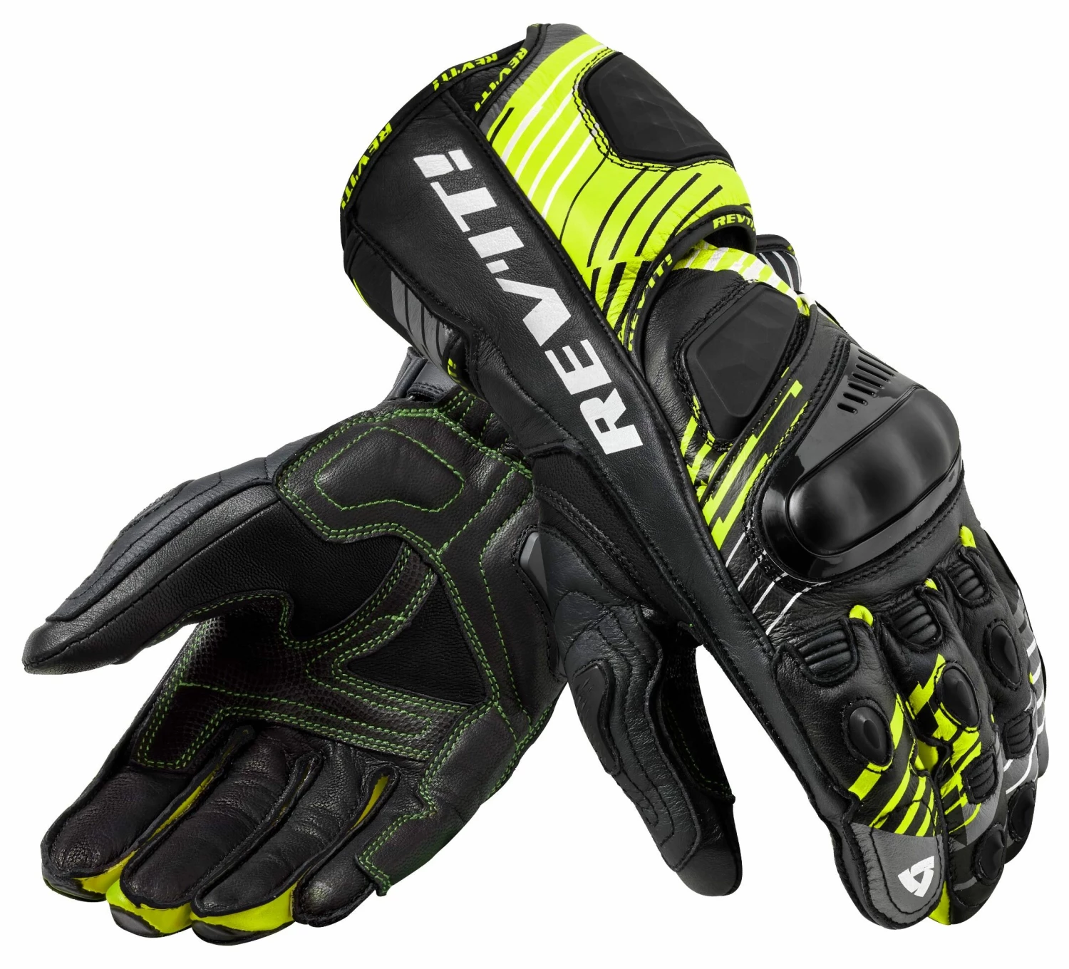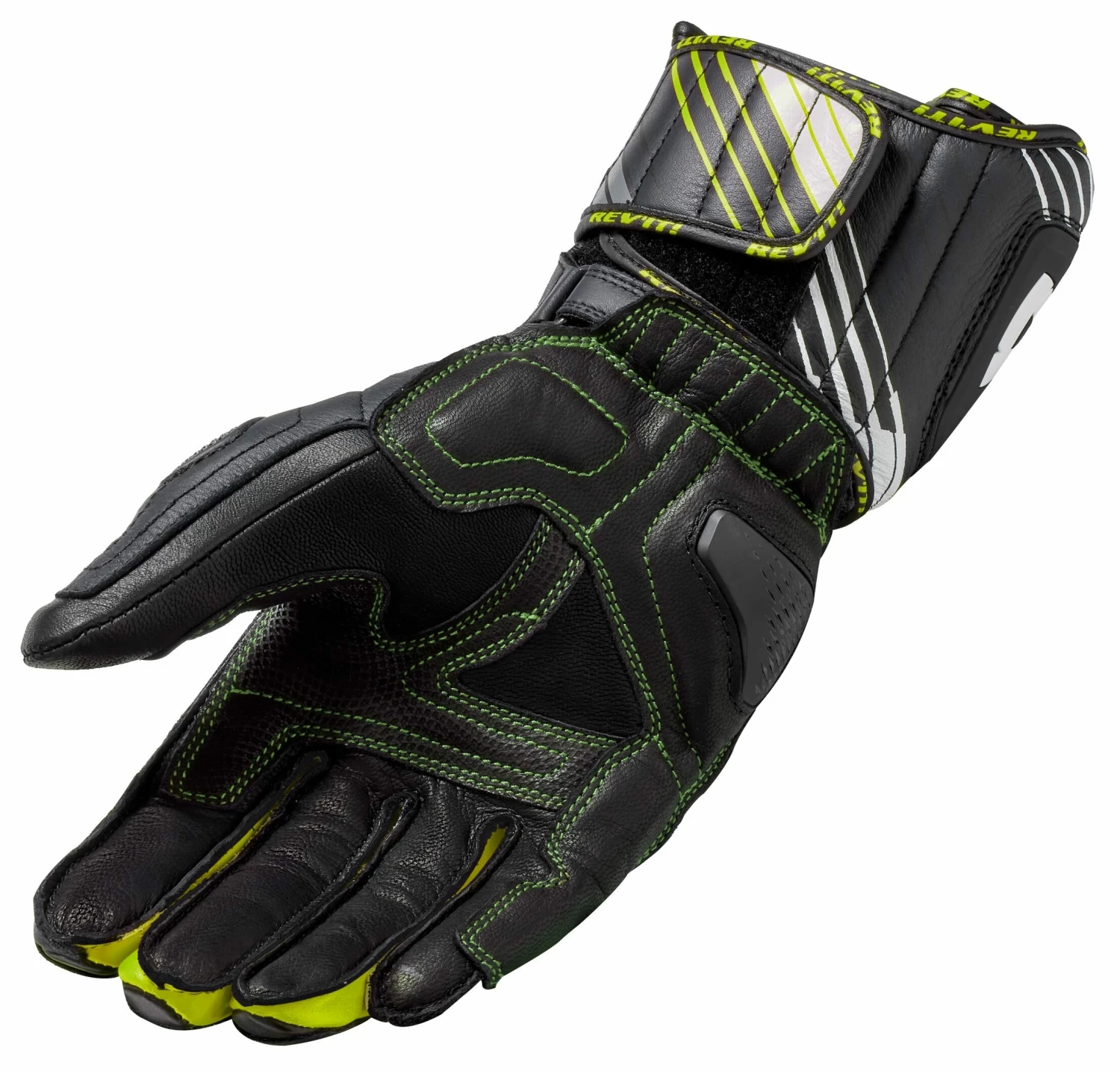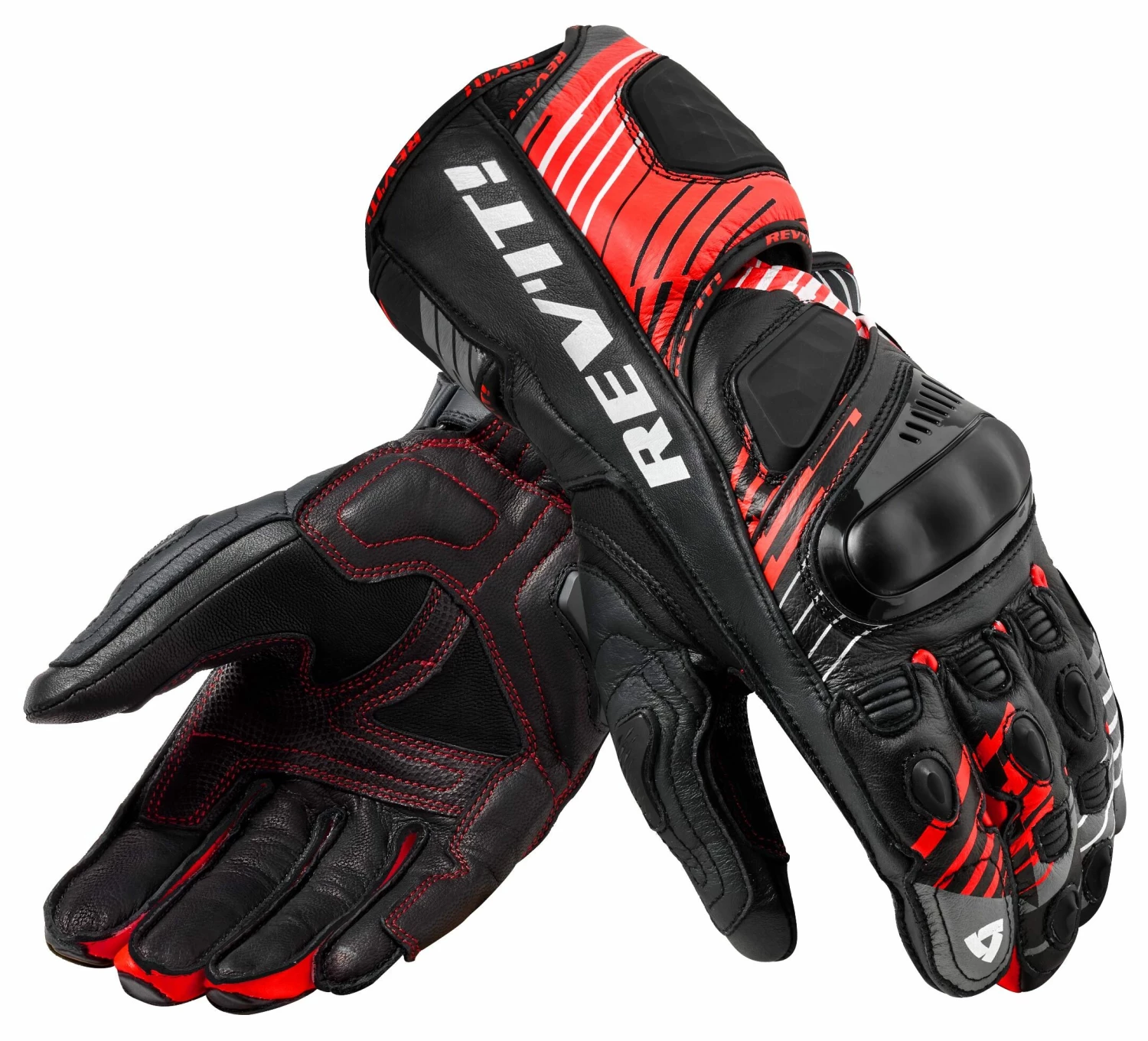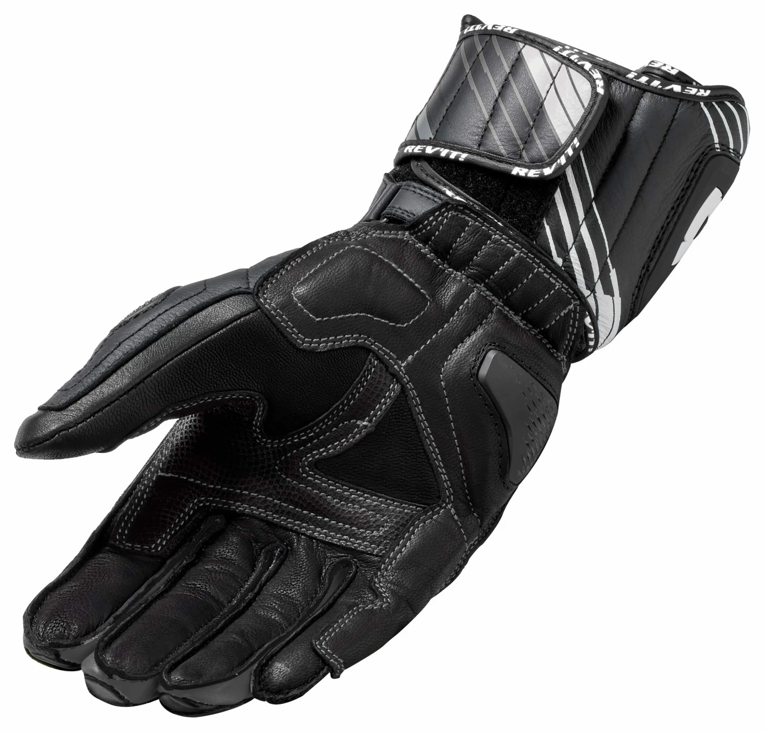 The REV’IT! Apex Gloves are for the fierce sport rider attacking the streets of the concrete jungle. REV’IT! takes track-ready characteristics and fuses them into a road-ready package. A ventilated leather outer shell allows the breeze to hit your hands with ease and comfort on those hot-weather rides, while hard knuckles and protection throughout keeps you safe. With a grip patch at the palm, these long-cuffed motorcycle gloves with pre-curved fingers echo the gloves that are found on tracks across the globe.
