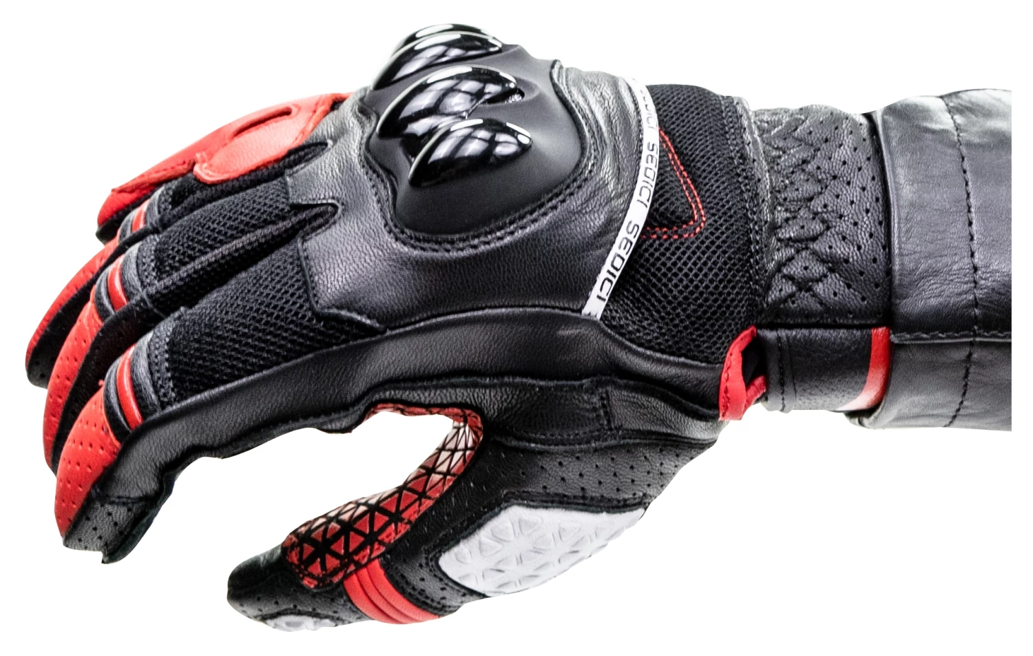 Suit up for your next ride with the Sedici Vento short cuff gloves. The drum dyed goat skin leather and precurved construction will provide added comfort and reduced fatigue on your ride. The Vento gloves also feature Touch tech on the index finger and thumb for easier access to your phone or GPS system.
