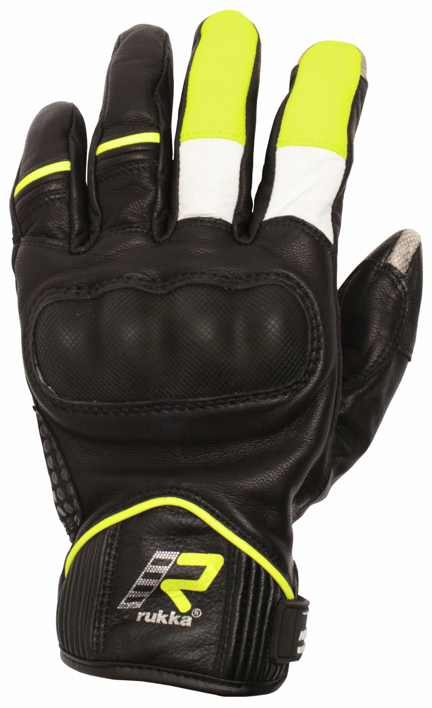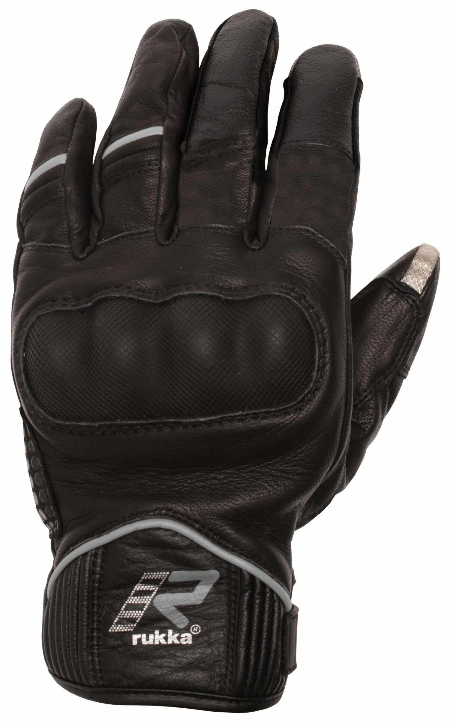 Rukka Rytmi gloves may be made of lightweight leather, but they are definitely punching in a heavier weight class. Hard part knuckle protection backs up full leather construction. Touchscreen finger tips allow you to interact with capacitive touch screens.