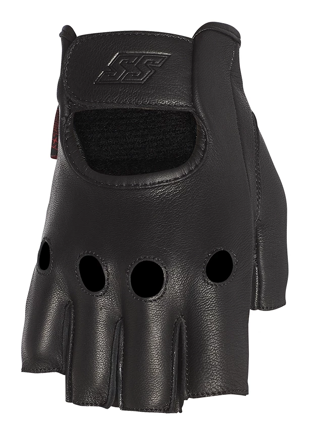 With full goatskin leather construction, the Half Nelson Fingerless Gloves are built for many miles on the open road. Light padding within the palm helps to reduce fatigue while individual knuckle cut outs help to promote airflow down the back of your hand.