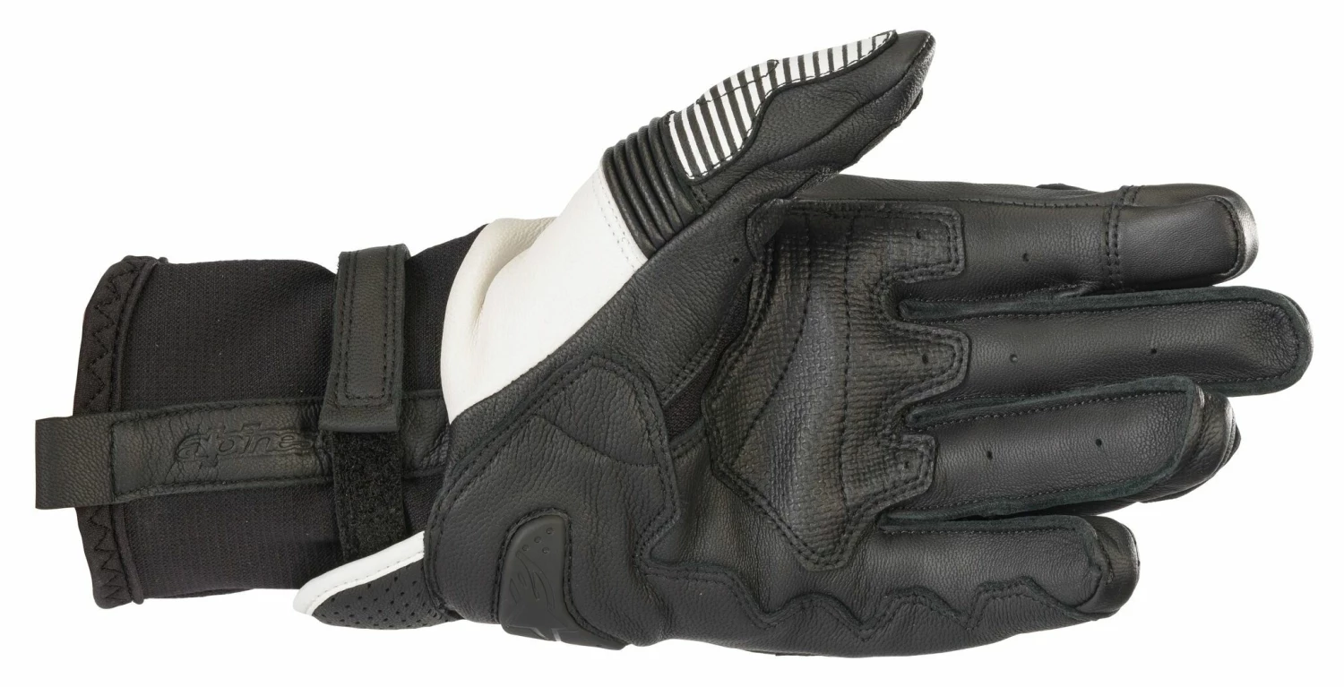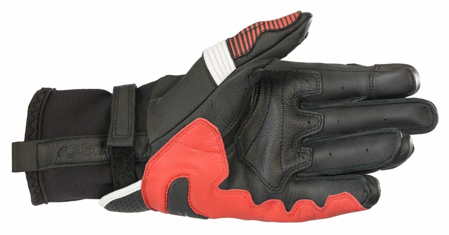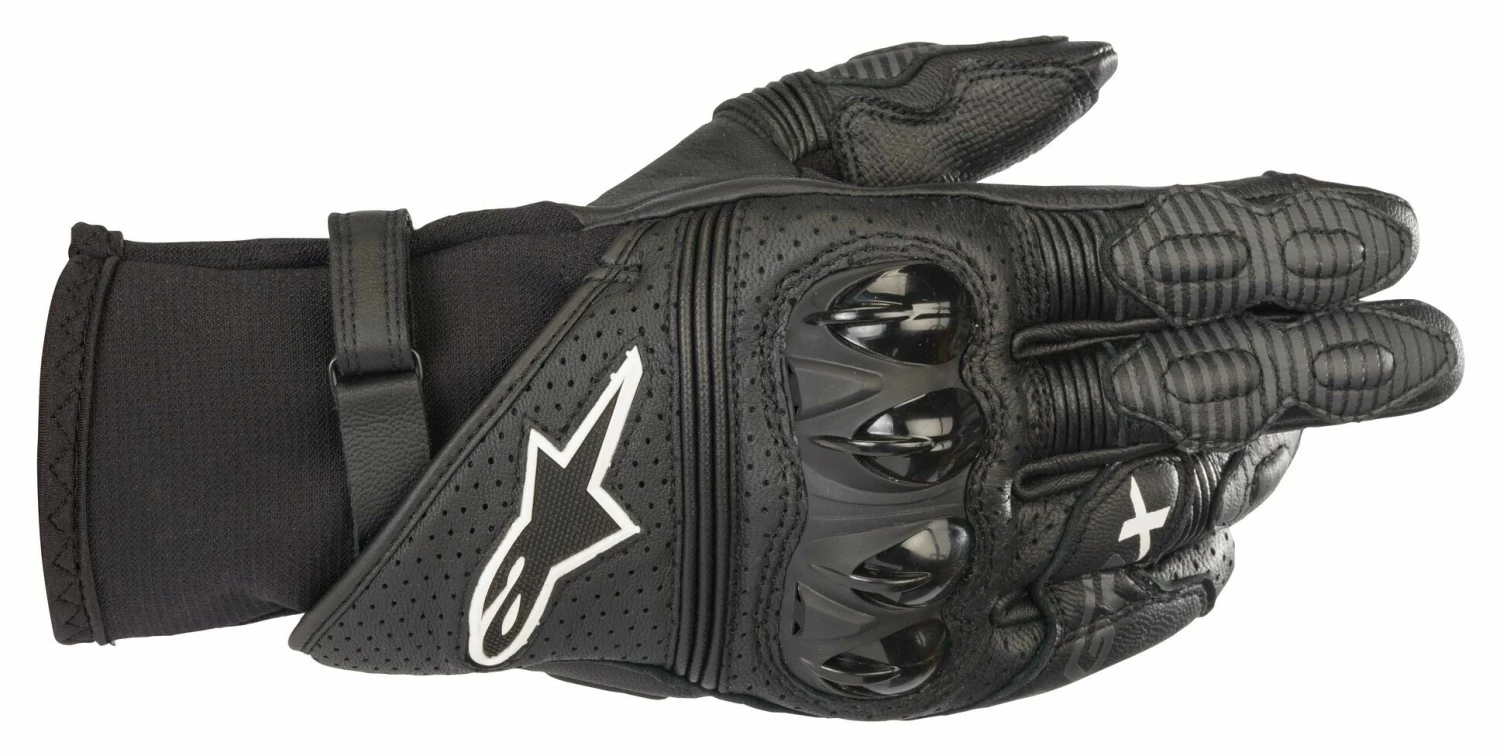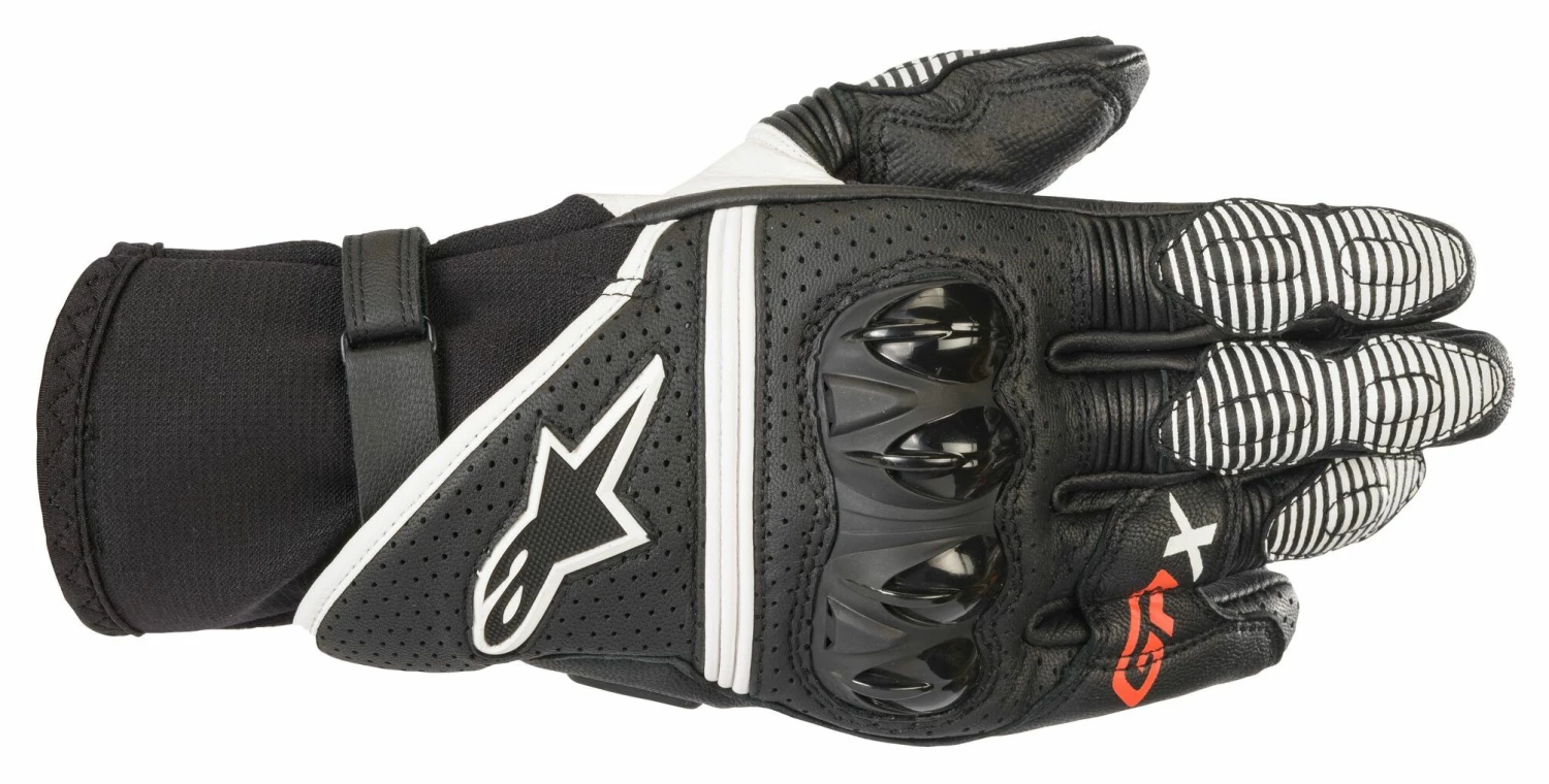 The Alpinestars GPX V2 Gloves split the difference between a long gauntlet glove and short cuff for a protective glove that is just right. Outer seam construction on the palms and fingers alleviate pressure points common with internal seams when gripping your controls. A textile cuff is designed to tuck into the sleeve of your jacket to add both comfort and protection. Hard knuckle protection, a finger bridge and a hard palm slider are all safety features to help protect you on your ride. Accordion stretch sections along the fingers and thumb provide freedom of movement.