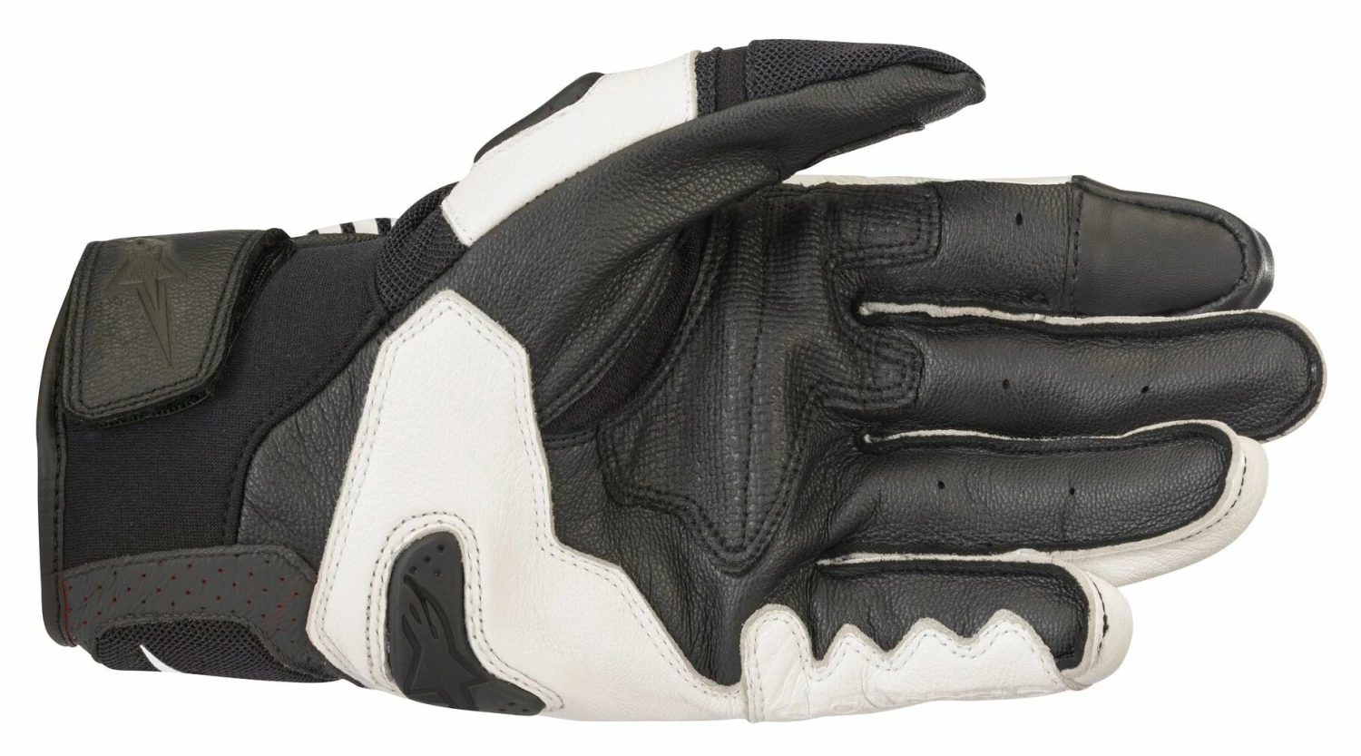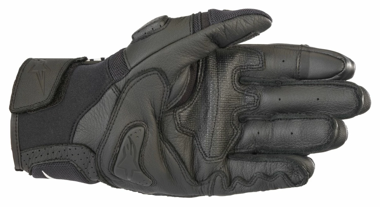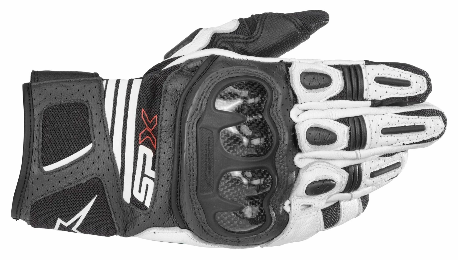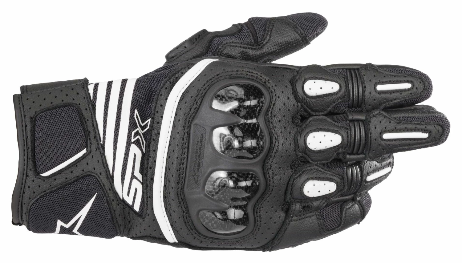 The protection of leather and the airflow of stretch mesh make the Alpinestars SPX Air Carbon V2 Gloves an excellent option for hot weather riding. Outer seam palm construction alleviates pressure points from seams when you’re gripping your controls. Carbon knuckle protection adds to the sporty aggressive look. Side reinforcements along the pinky and a hard palm slider safeguard these injury prone areas in the event of a low-side. Accordion stretch along the fingers make it easy to grab your grips. The SPX Air Carbon V2 Gloves are tailor made to beat the heat so you can ride with the track inspired protection without overheating.ย
