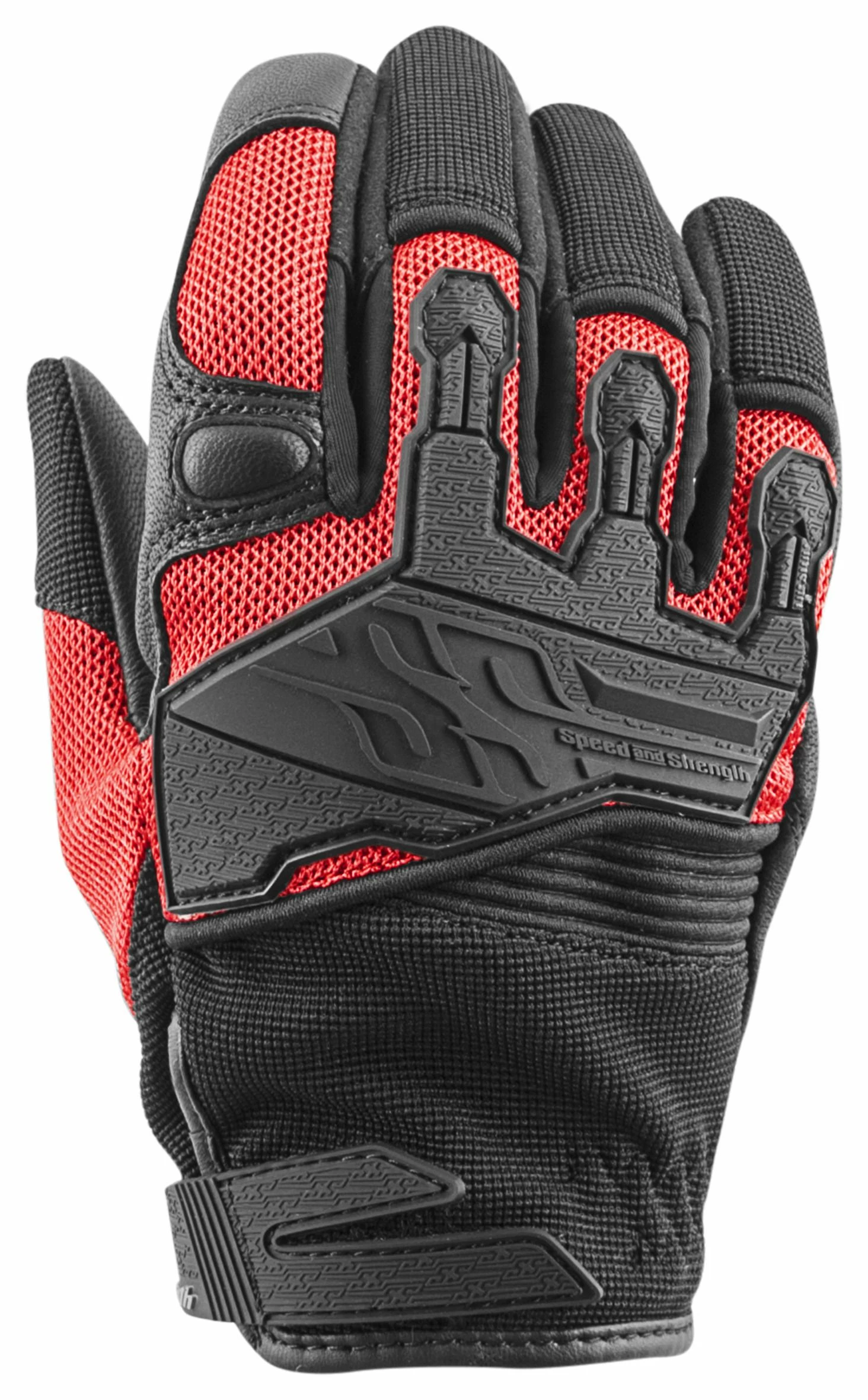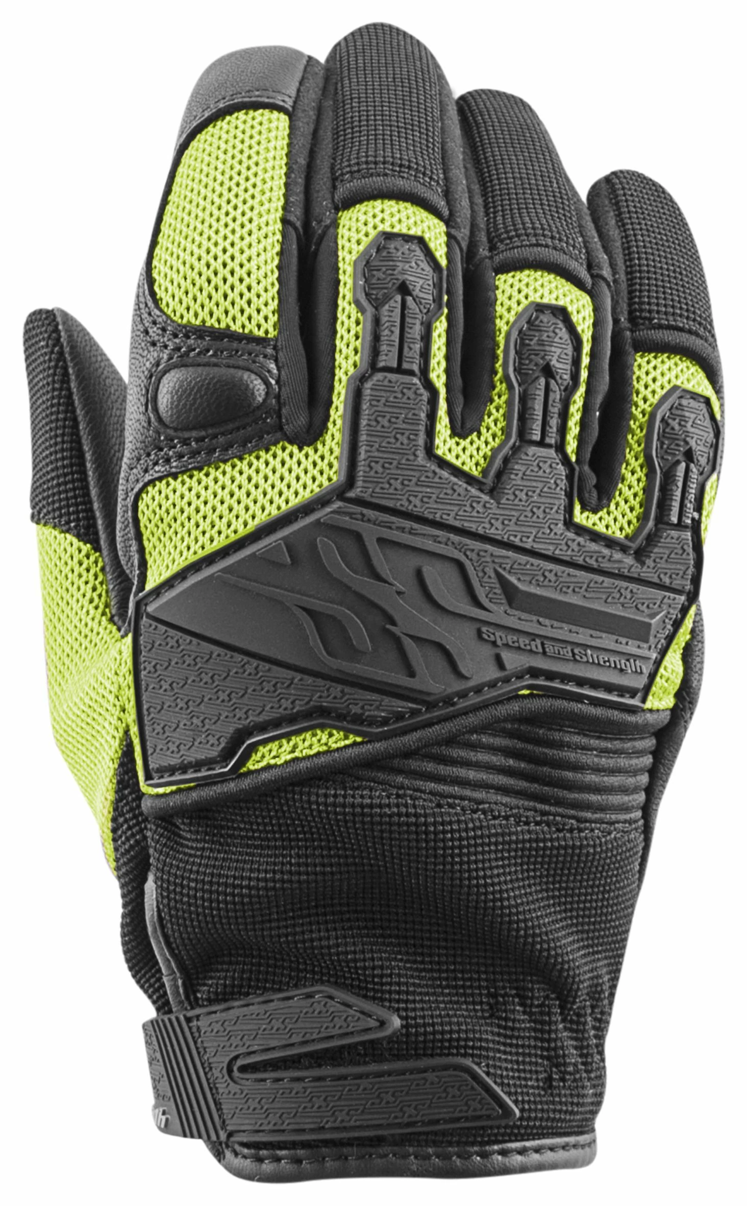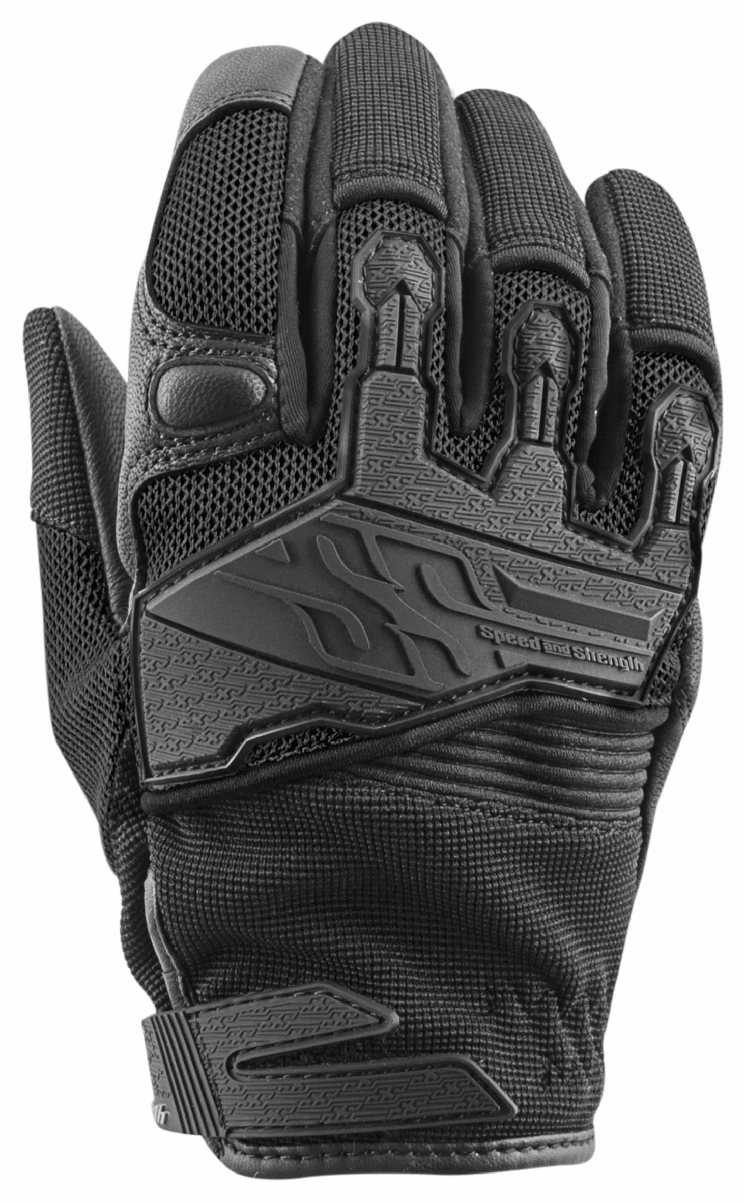 The Backlash mesh motorcycle gloves from Speed and Strength have a leather and mesh frame with a pre-curved race cut fit. The gloves feature TPR knuckle protectors and offer a hook and loop closure for a secure and adjustable fit.