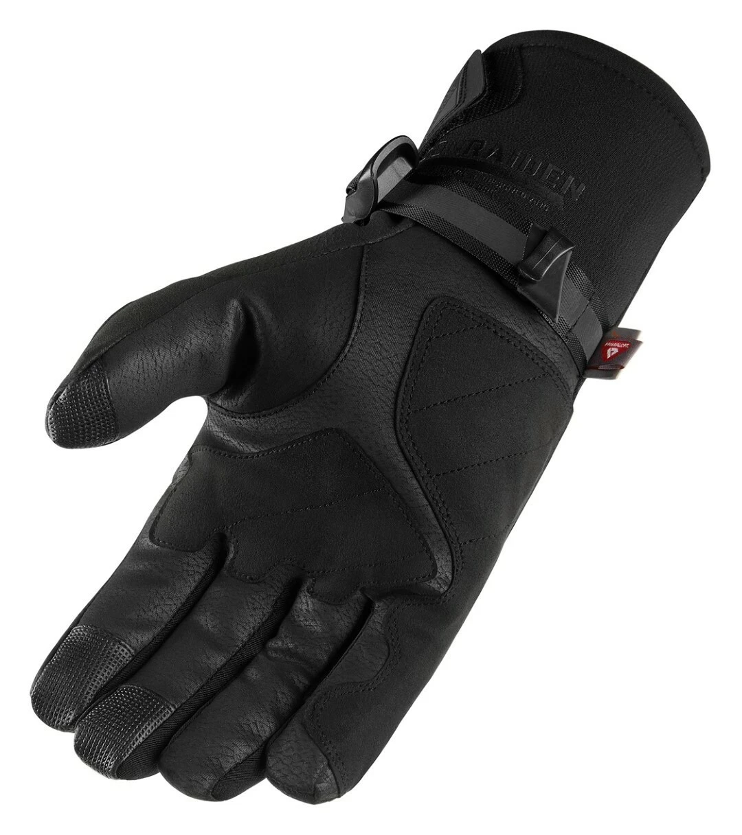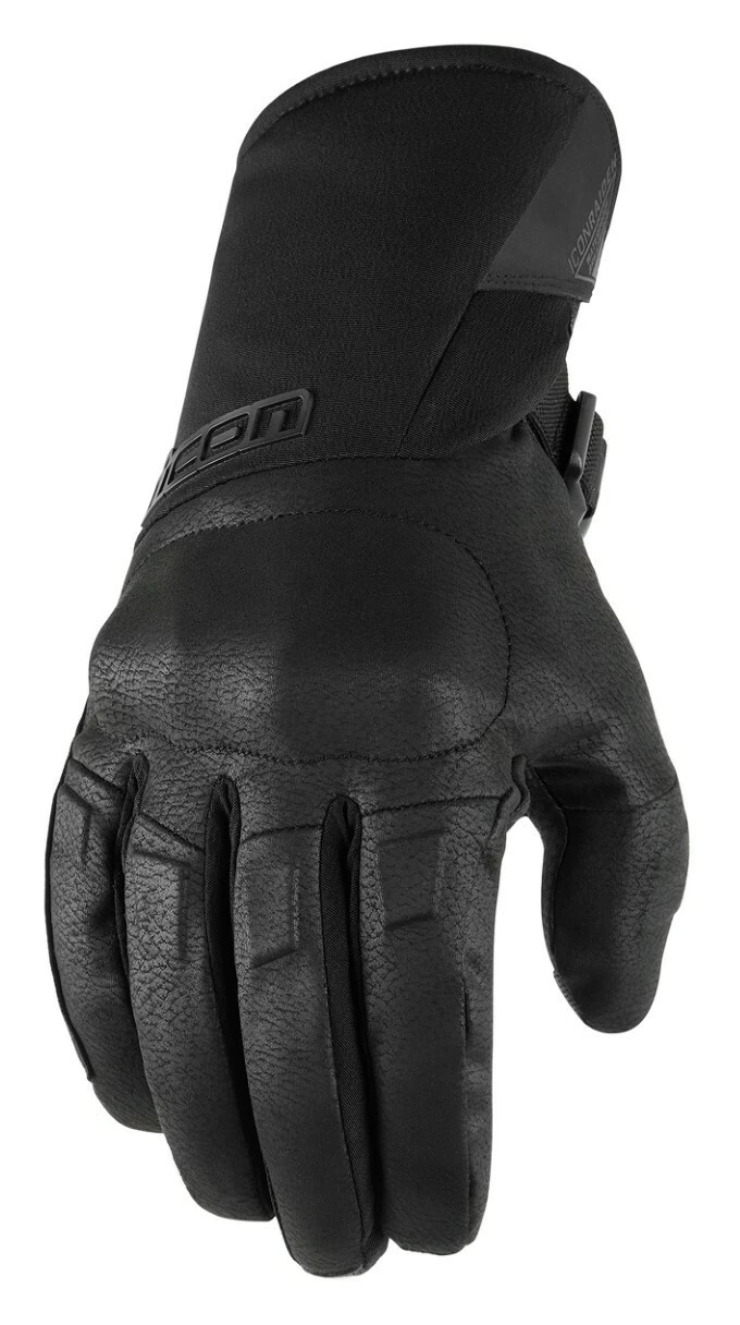 Frozen wet hands can ruin a ride very quickly, the Icon Raiden Gloves won’t let that happen. The durable Ax Laredo palm and textile chassis are combined with PrimaLoft insulation and waterproof Hipora liner resulting in a warm and rugged glove. The D3O knuckle insert minimizes bulk and adds reinforcement while the Hook and Loop wrist closure keeps your glove secure and reflective graphics add increased visibility.