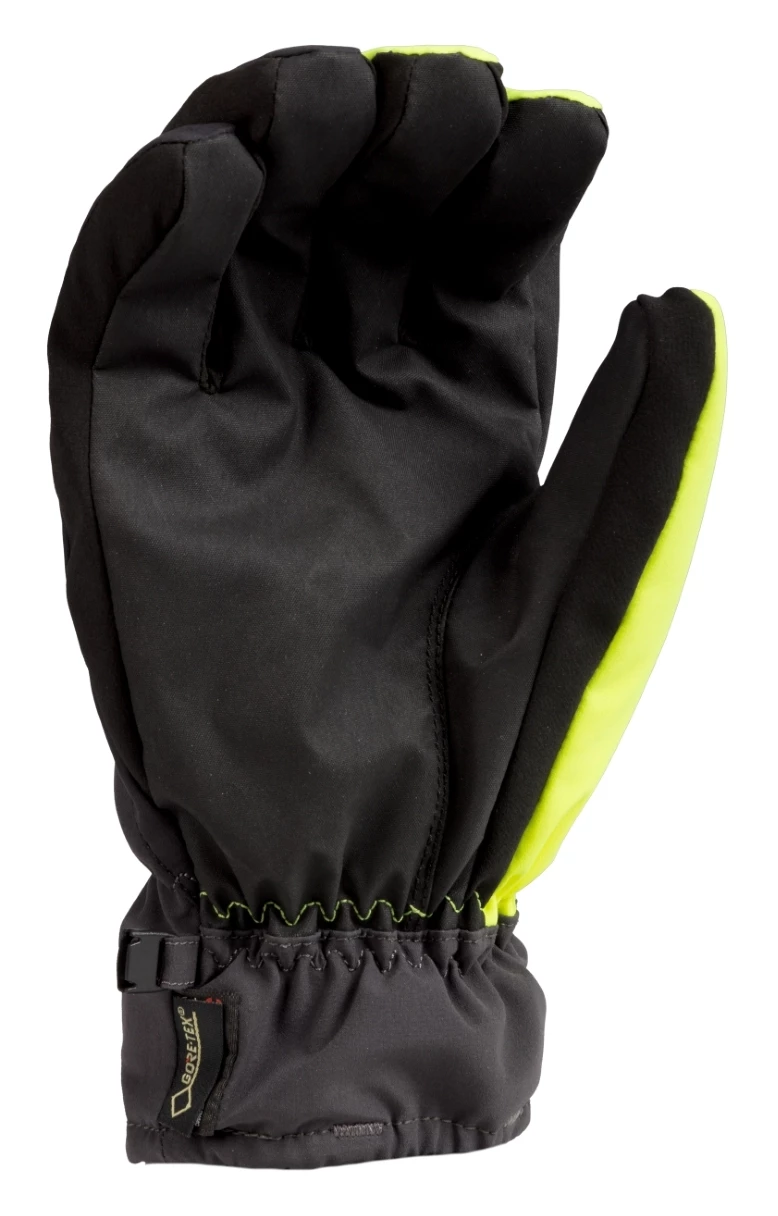 The Klimate Short Gloves take the high quality premium features from the Klimate gauntlet glove and shorten it for easier on and off. Gore-Tex breathable waterproofing keeps your hands from getting clammy and keeps out water. Thinsulate insulation holds in heat with 200 grams strategically placed on the back of the hand for localized insulation. The palm is considerably less bulky with only 100 grams of insulation.ย