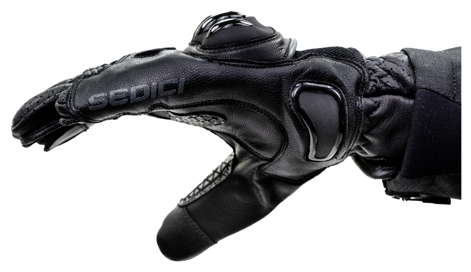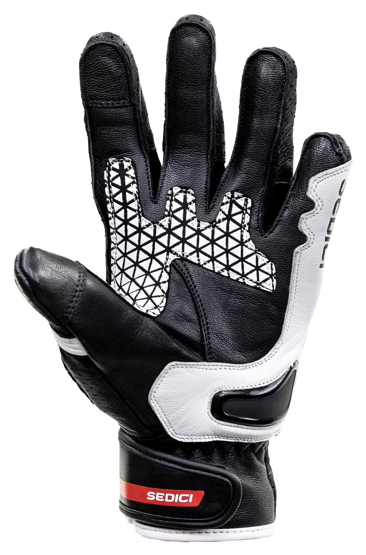 The Sedici Vento women’s glove is constructed with drum dyed goatskin and features Touch tech leather on the index finger and thumb for ease of use with your phone or GPS system. The women’s specific fit with precurved construction will provide comfort and reduced fatigue on your next ride.